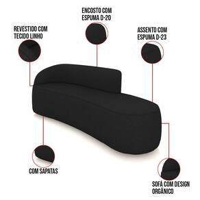 O Sofá 4 Lugares Orgânico Morgan de 220 cm, é a combinação perfeita de conforto e estilo. Com uma estrutura robusta de madeira de eucalipto e MDF, este sofá garante durabilidade e resistência. Os assentos e encostos são fixos, o encosto é preenchido com espuma D-20, proporcionando suporte ideal para suas costas, enquanto o assento com espuma D-23 oferece uma experiência de assento firme e aconchegante. O elegante revestimento em Linho na sofisticada cor Preto é uma escolha que combina conforto com um toque de modernidade. O design orgânico remete às formas encontradas na natureza como ondas, folhas ou conchas que além de se moldarem ao corpo humano, evocam uma sensação de calma e equilíbrio. Seu formato curvo e sem braços traz um toque de modernidade, permitindo que o sofá se encaixe harmoniosamente em diversos estilos de decoração, desde o minimalista até o mais ousado. A fluidez das linhas cria um ambiente acolhedor e convidativo, perfeito para qualquer ocasião. As sapatas plásticas são pequenas proteções colocadas na base dos pés do sofá para evitar que eles risquem ou danifiquem o chão. Além de proteger o piso, essas sapatas ajudam a distribuir o peso do sofá de maneira mais uniforme. Seja para receber amigos, relaxar após um dia longo ou simplesmente adicionar um toque de elegância ao seu lar, o Sofá Orgânico é a escolha ideal. Não perca a oportunidade de elevar a decoração da sua casa com esta peça única. Adquira já o seu e descubra o que é conforto e estilo em um só lugar!