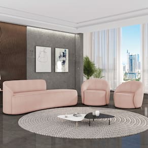 O Kit Sofá 4 Lugares Orgânico 220cm Morgan e 2 Poltronas Lua é um verdadeiro convite ao relaxamento! Ele possui um design orgânico que remete às formas encontradas na natureza que além de se moldar ao corpo humano, evoca uma sensação de calma e equilíbrio criando um espaço acolhedor e relaxante. O revestimento desse maravilhoso conjunto conta com um tecido extremamente elegante no Bouclê Rosê, suportando em média até 300 kg de peso, podendo ser utilizado por pessoas de diferentes biotipos. A Poltrona Lua contém uma simetria artística e curvas suaves, ela contém uma Base Giratória com giro em 360 graus e uma estrutura em madeira de reflorestamento eucalipto, que garante a resistência e a sustentabilidade do produto. Ela tem um acabamento reforçado e espuma de qualidade D23, que oferece maciez e conforto. Ela contém detalhes de costura no encosto e um assento cilíndrico arredondado resultando em um acabamento perfeito conferindo muito mais valor e personalizado ao produto, oferecendo maior liberdade de movimento ao cliente. O Sofá Morgan por sua vez é uma combinação perfeita de conforto e estilo. Com uma estrutura robusta de madeira de eucalipto e MDF, este sofá garante durabilidade e resistência. Os assentos e encostos são fixos, o encosto é preenchido com espuma D-20, proporcionando suporte ideal para suas costas, enquanto o assento com espuma D-23 oferece uma experiência de assento firme e aconchegante. Seu formato curvo e sem braços traz um toque de modernidade, permitindo que o sofá se encaixe harmoniosamente em diversos estilos de decoração, desde o minimalista até o mais ousado. As sapatas plásticas são pequenas proteções colocadas na base dos pés do sofá para evitar que eles risquem ou danifiquem o chão. Além de proteger o piso, essas sapatas ajudam a distribuir o peso do sofá de maneira mais uniforme. Esse lindo conjunto pode ser utilizado em salas de estar, recepções, escritórios, lojas, espaços comerciais, ou qualquer outro espaço que você queira decorar com estilo e bom gosto. O kit Sofá Morgan e 2 Poltronas Lua é um produto que vai fazer a diferença na sua decoração e no seu bem-estar. Ele vai trazer charme, conforto e durabilidade para o seu ambiente. Corra e garanta o seu agora mesmo!