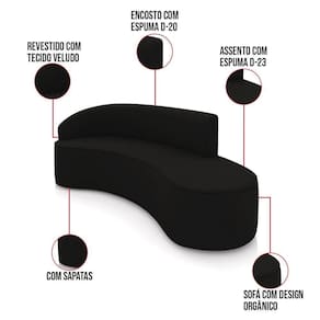 O Kit Sofá 2 Lugares Orgânico 220cm Morgan e Poltrona Lua é um verdadeiro convite ao relaxamento! Ele possui um design orgânico que remete às formas encontradas na natureza que além de se moldar ao corpo humano, evoca uma sensação de calma e equilíbrio criando um espaço acolhedor e relaxante. O revestimento desse maravilhoso conjunto conta com um tecido extremamente elegante no Veludo Preto, suportando em média até 120 kg de peso, podendo ser utilizado por pessoas de diferentes biotipos. A Poltrona Lua contém uma simetria artística e curvas suaves, ela contém uma Base Giratória com giro em 360 graus e uma estrutura em madeira de reflorestamento eucalipto, que garante a resistência e a sustentabilidade do produto. Ela tem um acabamento reforçado e espuma de qualidade D23, que oferece maciez e conforto. Ela contém detalhes de costura no encosto e um assento cilíndrico arredondado resultando em um acabamento perfeito conferindo muito mais valor e personalizado ao produto, oferecendo maior liberdade de movimento ao cliente. O Sofá Morgan por sua vez é uma combinação perfeita de conforto e estilo. Com uma estrutura robusta de madeira de eucalipto e MDF, este sofá garante durabilidade e resistência. Os assentos e encostos são fixos, o encosto é preenchido com espuma D-20, proporcionando suporte ideal para suas costas, enquanto o assento com espuma D-23 oferece uma experiência de assento firme e aconchegante. Seu formato curvo e sem braços traz um toque de modernidade, permitindo que o sofá se encaixe harmoniosamente em diversos estilos de decoração, desde o minimalista até o mais ousado. As sapatas plásticas são pequenas proteções colocadas na base dos pés do sofá para evitar que eles risquem ou danifiquem o chão. Além de proteger o piso, essas sapatas ajudam a distribuir o peso do sofá de maneira mais uniforme. Esse lindo conjunto pode ser utilizado em salas de estar, recepções, escritórios, lojas, espaços comerciais, ou qualquer outro espaço que você queira decorar com estilo e bom gosto. O kit Sofá Morgan e Poltrona Lua é um produto que vai fazer a diferença na sua decoração e no seu bem-estar. Ele vai trazer charme, conforto e durabilidade para o seu ambiente. Corra e garanta a sua agora mesmo!