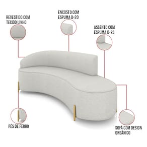 Sofá 4 Lugares Orgânico 220cm Pé Dourado Morgan Linho Cinza D03 - D`Rossi