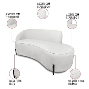 O Sofá 4 Lugares Orgânico Morgan de 220 cm, é a combinação perfeita de conforto e estilo. Com uma estrutura robusta de madeira de eucalipto e MDF, este sofá garante durabilidade e resistência. Os assentos e encostos são fixos, o encosto é preenchido com espuma D-20, proporcionando suporte ideal para suas costas, enquanto o assento com espuma D-23 oferece uma experiência de assento firme e aconchegante. O design orgânico remete às formas encontradas na natureza como ondas, folhas ou conchas que além de se moldarem ao corpo humano, evocam uma sensação de calma e equilíbrio. Seu formato curvo e sem braços traz um toque de modernidade, permitindo que o sofá se encaixe harmoniosamente em diversos estilos de decoração, desde o minimalista até o mais ousado. A fluidez das linhas cria um ambiente acolhedor e convidativo, perfeito para qualquer ocasião. Os pés de ferro, além de fornecerem estabilidade, trazem um toque industrial que contrasta lindamente com o elegante revestimento em Bouclê na sofisticada cor Cinza. Seja para receber amigos, relaxar após um dia longo ou simplesmente adicionar um toque de elegância ao seu lar, o Sofá Orgânico é a escolha ideal. Não perca a oportunidade de elevar a decoração da sua casa com esta peça única. Adquira já o seu e descubra o que é conforto e estilo em um só lugar! OBSERVAÇÃO IMPORTANTE: A entrega é realizada no endereço informado, não realizamos o transporte para andares superiores, como subir escadas, elevadores ou guinchos. Não realizamos montagens, desmontagens ou instalações. Todos esses serviços são de responsabilidade do comprador. Dimensões do Produto: Altura Total: 80 cm Largura Total: 220 cm Profundidade Total: 70 cm Tamanho dos pés: 5 cm Peso: 34 kg Outras Medidas: Altura Interna do Encosto: 40 cm Altura do Assento ao Chão: 45 cm Largura Interna do Assento: 220 cm Profundidade Interna do Assento: 55 cm Especificações do Produto: Estrutura: Madeira Eucalipto e MDF Espuma do Encosto: D-23 Espuma do Assento: D-20 Percintas Elásticas Revestimento: Bouclê Possui Pés: Sim Tipo de Pés: Pés de Ferro Preto Peso Suportado: Até 300 Kg Quantidade de Lugares: 4 Lugares Tipo de Encosto: Fixo Tipo de Assento: Fixo É retrátil: Não É reclinável: Não Diferenciais: Design Orgânico Montagem: Produto entregue montado. Garantia: 90 dias contra defeito de fabricação Instruções de Limpeza: Utilizar um pano limpo e levemente úmido Você irá Receber: 01 Sofá Entregue em: 01 Volume