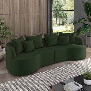 O Sofá 4 Lugares Orgânico Living Mersa de 250 cm é a escolha ideal para quem busca conforto, estilo e durabilidade. Com design modular, o sofá Mersa é versátil e pode se adequar a diferentes layouts de sala. Ele possui revestimento em Veludo Verde, perfeito para trazer um toque de modernidade para sua sala. Conta com uma estrutura feita em madeira de lei (eucalipto), devidamente tratada e aparelhada, oferecendo maior resistência ao móvel. Os reforços com cantoneiras e chapas em MDF garantem uma estrutura sólida e resistente. Tanto o encosto quanto o assento possuem cintas metálicas e molas espirais no assento, oferecendo conforto, suporte e aconchego como poucos sofás no mercado. O estofado assegura um toque macio e aconchegante com espumas D-28 no assento, fibra siliconada 100% no encosto e espumas D-23 nos braços. Tudo pensado para proporcionar uma sensação acolhedora, perfeita para relaxar enquanto você assiste a um filme ou lê um bom livro. Sem contar que os pés de madeira acrescentam-se ao design garantindo maior estabilidade ao móvel. E tem mais, além do encosto e assento serem fixos ideal para quem deseja unir conforto, estilo e praticidade, o sofá ainda acompanha charmosas almofadas decorativas, tornando-o uma peça perfeita. Se você busca um sofá que combine sofisticação extra, durabilidade e estilo, o Living Mersa é a escolha certa. Com ele, você terá uma peça única que valoriza o seu lar e proporciona o descanso merecido após um dia agitado. Não perca a chance de adquirir esse sofá e elevar o nível de conforto e beleza do seu espaço!