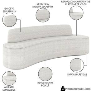 O impressionante Sofá 4 Lugares para Sala de Estar Living 260cm Koane D06 Bouclê Off White, da Mpozenato, é o estofado perfeito para elevar seu espaço de convivência! Projetado com um toque moderno, esse sofá curvo apresenta estilo e funcionalidade, o que o torna indispensável para qualquer casa contemporânea.