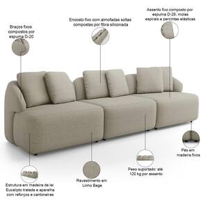Fabricante: Lyam Decor | OriginState: PR | Quantidade de Caixas de embalagem: 4 | Peso máximo suportado: 480 kg | ColorFamily: Bege | Material de enchimento do encosto: Fibra Siliconada | ColorSupplier: Bege | ProductWeight: 145 kg | SupplierSimpleName: Sofá 4 Lugares Para Sala de Estar Living 294cm Arlo F04 Linho Bege - Lyam Decor | ProductContents: 01 Sofá | Color: Bege | Peso: 145 kg | Estilo: Moderno | Material: Madeira de Eucalipto, Cantoneiras, Chapas em MDF | OriginCountry: Brasil | Model: Arlo | Tipo de produto: Sofá Modulado | Cor: Bege | Linha: Sala de Estar, Living | Formato do sofá: Orgânico | ProductWarranty: 90 dias após o recebimento do produto | ProductInstructions: Produto para uso em ambiente interno, nao devendo ficar exposto ao sol, calor e umidade excessivos. | Largura: 294 cm | Unidades por kit: 1 | ColorSimple: Bege | Mecanismo de abertura do produto: na | Orientação do Sofá: Linear | Requer montagem: Não | Desenho do tecido: Liso | Material do estofamento: Linho | MaterialFamily: Madeira de Eucalipto | ProductHeight: 87 cm | Densidade da espuma do assento: D-26 | ProductWidth: 294 cm | ProductLength: 87 cm | Cor dos pés: Marrom Escuro | Profundidade: 87 cm | Altura: 87 cm | SizeDescription: Altura: 87 cm x Largura: 294 cm x Profundidade: 87 cm