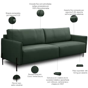 Com linhas finas e precisas, esse sofá 4 lugares, conta com design moderno que conquista pela simplicidade elegante e pelo charme atemporal. Os pés em aço dão um toque urbano e contemporâneo, enquanto o revestimento em couro oferece durabilidade com um visual impecável. A espuma de alta densidade garante conforto sem exageros - perfeito para quem busca sofisticação discreta e aconchego inteligente. Seja em um loft industrial ou em um apartamento moderno, o sofá de couro Italy se adapta com maestria, provando que menos pode ser muito mais.