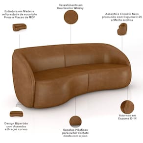 Altura: 79 cm | Color: Marrom | ColorFamily: Marrom | ColorSimple: Marrom | ColorSupplier: Whisky | Cor: Whisky | Cor dos pés: Preto | Densidade da espuma do assento: D-26 | Desenho do tecido: Liso | Estilo: Orgânico | Fabricante: Lyam Decor | Formato do sofá: Curvo | Largura: 318 cm | Linha: Sala de Estar | Material: Madeira de Reflorestamento, Espuma D-26, Couríssimo | Material de enchimento do encosto: Espuma D-26 | Material do estofamento: Couríssimo | MaterialFamily: Madeira, Espuma | Mecanismo de abertura do produto: na | Model: Eron | Orientação do Sofá: Frontal | OriginCountry: Brasil | OriginState: PR | Peso: 65 Kg | Peso máximo suportado: 240 kg | ProductContents: 01 Sofá | ProductHeight: 79 cm | ProductInstructions: Produto para uso em ambiente interno, nao devendo ficar exposto ao sol, calor e umidade excessivos. | ProductLength: 110 cm | ProductWarranty: 90 dias após o recebimento do produto | ProductWeight: 64 kg | ProductWidth: 318 cm | Profundidade: 110 cm | Requer montagem: Não | SizeDescription: Altura: 79 cm x Largura: 318 cm x Profundidade: 110 cm | SupplierSimpleName: Sofá 4 Lugares Para Sala Living Orgânico 318cm Eron M03 Couríssimo Whisky - Lyam Decor | Tipo de produto: Sofá Living | Unidades por kit: 1