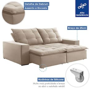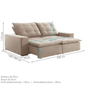 Sofá 4 Lugares Paris Retrátil e Reclinável Super Pilow 230cm Bege Claro - Celflex