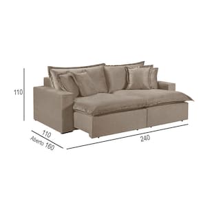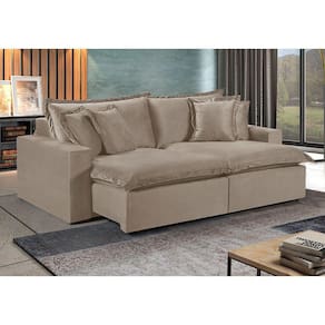 Características: Material: Linho Requer Montagem?: Sim Acessóios inclusos: Almofadas Decorativas Acompanha Chaise?: Não Tipo do Acento, tem Pillow Top?: Retrátil, Com Pillow Top De 20 cm Densidade Espuma Assento: D-28 Possui Mola no Assento? Tipo de mola?: Sim, Molas Ensacadas Possui Persinta? Tipo de Persinta: Sim, Percinta Elastica Tipo do Encosto: Encosto Fixo Amofadas do encosto Fixa ou Solta?: Encosto Fixo, Almofadas Solta Densidade Espuma Encosto: 100 Fibra Silicone Posui Pés -Sim ou Não-: Sim Quantidade de Pés: 8 Tipo de Pés -Material-: Madeira Acompanha Rodízio -Sim ou Não-: Sim Quantidade de Rodízios: 2 Rodízios Material Rodízio: Silicone Matéria Prima: Elcalipto Tratado Revestimento: Espuma D-28 Soft Madeira Aparelhada ou Bruta?: Aparelhada A Madeira é Tratada? -Sim ou Não-: Sim Tipo de Trilho Onde Corre o Retrátil?: Tubo Pintado É Bipartido ou Inteiriço?: Bipartido