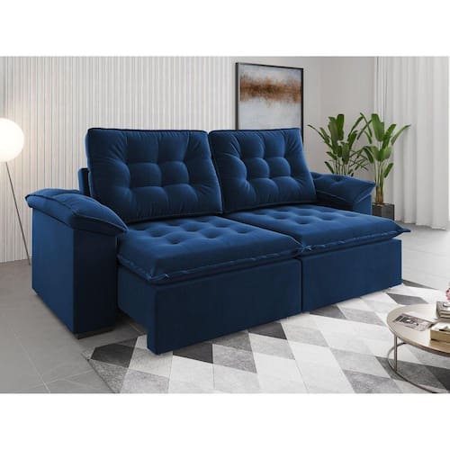 A sua sala de estar só está completa na presença de um bom sofá e nada mais gostoso do que receber a família ou curtir os seus momentos de descanso junto com o modelo Detroit! Pensado para quem quer aliar bom gosto uma estrutura reforçada para o uso diário Acompanha Almofadas extras: Não Altura do assento até o chão: 45 Altura do Encosto: 80 Altura dos Pés: 4 Ambiente Principal: Sala de Estar Complexidade da Montagem: Média: pode ser montado por mais de uma pessoa e/ou necessite de maior conhecimento para montagem Cor: Azul Cor do Produto: Azul Densidade do Assento: D-23 Densidade do Encosto: D-23 Enchimento do Assento: Espuma Enchimento do Encosto: Fibra Siliconada Itens Inclusos: 1 Sofá, Kit Ferragens e Manual de Montagem Manual de Montagem e Instalação: https://product-hub-prd.madeiramadeira.com.br/890306/documents/51a2e12b-14d9-4427-bb0c-05b68c98fe41qdemontagemestofadodetroit.pdf Material dos Pés: Plástico Necessita Montagem: Sim Origem do Produto: Nacional Peso: 128 kg Pet Friendly: Não Possui Percintas Elásticas: Sim Possui Pés: 08 Possui Rodízio: Sim Profundidade Quando Estendido: 156 Recomendações de Uso, Manutenção e Limpeza: Limpar com pano levemente umedecido com água Rodízio com Trava: não Sistema de Montagem: Parafusos, cavilhas Suporta Até (kg): 270 Tecido Predominante: Veludo Tipo de Encosto: Regulável Tipo de Mola: Molas Ensacadas