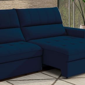 Video demonstrativo. Produto Montado: Sim Acompanha Almofadas extras: Não Almofada do assento: Fixa Almofada do encosto: Fixa Altura do assento até o chão: 52.0000 Altura do Encosto: 65 cm Altura dos Pés: 5 cm Altura Máxima dos Pés: 5.0000 Ambiente Principal: Sala de Estar Bipartida: Sim codigo_ean: 7900288106254 Complexidade da Montagem: Baixa: pode ser montado por uma pessoa sozinha Cor: Azul Cor do Produto: Azul Densidade do Assento: D-26 Enchimento do Assento: Espuma Enchimento do Encosto: Fibra Siliconada Estilo de Braço: Braços Quadrados Firmeza do Assento: Médio Itens Inclusos: 1 Sofá, Kit Ferragens e Manual de Montagem Largura do Braço: 24 cm Linha ou Coleção: Coleção Premium Manual de Montagem e Instalação: https://product-hub-prd.madeiramadeira.com.br/982125/documents/a6573ec5-fa9e-4797-951e-d1410566185857951742491537982125150392.pdf Marca: Arte Cúbica Estofados Material da Corrediça do Sofá: Aço/Metal Material dos Pés: PVC Montagem Flex: Não Necessita Montagem: Sim Origem do Produto: Nacional Peso: 93 kg Peso Suportado por m²: 150 kg/m² Pet Friendly: Não Porta Copos: Não Possui Baú: Não Possui Entrada USB: Não Possui Mola: Sim Possui Percintas Elásticas: Sim Possui Pés: 08 Possui Rodízio: Sim Profundidade Quando Estendido: 163 cm Quantidade de Estágios do Encosto: 3 Quantidade de Molas por Assento: 108 Recomendações de Uso, Manutenção e Limpeza: Não molhar o estofado, não deixar por longas horas exposto ao sol, usar apenas água na limpeza do estofado Revestimento do Braço: Tecido Rodízio com Trava: Não Sistema de Montagem: Parafusos Suporta Até (kg): 150 kg Tecido Predominante: Veludo Tipo de Encosto: Regulável Tipo de Mola: Molas Ensacadas Tipo de Sofá: Sofá Comum