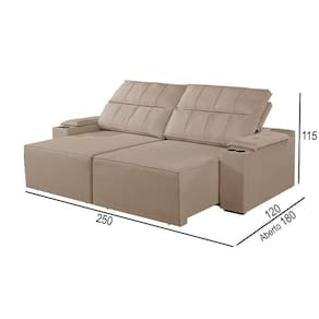 Sofá 4 Lugares Retrátil E Reclinável M-182 Martins Bege Sofa 4 Lugares Retratil e Reclinavel M-182 Martins Com Acessorios Veludo Caracteristicas: Requer Montagem?: Sim Acessoios inclusos: Porta Copo No Braco Acompanha Chaise?: Nao Tipo do Acento, tem Pillow Top?: Retratil Densidade Espuma Assento: D-28 Possui Mola no Assento? Tipo de mola?: Sim, Molas Ensacadas Possui Persinta? Tipo de Persinta: Sim, Percinta Elastica Tipo do Encosto: Reclinavel Amofadas do encosto Fixa ou Solta?: Encosto Bipartido ,Reclinavel, Almofadas Fixa Densidade Espuma Encosto: 100 Fibra Silicone Tem pillow nos Bracos?: Pillow Top 4 Cm Espuma D-28 Posui Pes (Sim ou Nao): Sim Quantidade de Pes: 8 Tipo de Pes (Material): Madeira Acompanha Rodizio (Sim ou Nao): Sim Quantidade de Rodizios: 2 Rodizios Material Rodizio: Silicone Materia Prima: Elcalipto Tratado Revestimento: Espuma D-28 Soft Madeira Aparelhada ou Bruta?: Aparelhada A Madeira e Tratada? (Sim ou Nao): Sim Tipo de Trilho Onde Corre o Retratil?: Tubo Pintado E Bipartido ou Inteirico?: Bipartido Estagios da Catraca: Catacra 5 Estagios