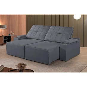 Sofá 4 Lugares Retrátil E Reclinável M-182 Martins Grafite Sofa 4 Lugares Retratil e Reclinavel M-182 Martins Com Acessorios Veludo Caracteristicas: Requer Montagem?: Sim Acessoios inclusos: Porta Copo No Braco Acompanha Chaise?: Nao Tipo do Acento, tem Pillow Top?: Retratil Densidade Espuma Assento: D-28 Possui Mola no Assento? Tipo de mola?: Sim, Molas Ensacadas Possui Persinta? Tipo de Persinta: Sim, Percinta Elastica Tipo do Encosto: Reclinavel Amofadas do encosto Fixa ou Solta?: Encosto Bipartido ,Reclinavel, Almofadas Fixa Densidade Espuma Encosto: 100 Fibra Silicone Tem pillow nos Bracos?: Pillow Top 4 Cm Espuma D-28 Posui Pes (Sim ou Nao): Sim Quantidade de Pes: 8 Tipo de Pes (Material): Madeira Acompanha Rodizio (Sim ou Nao): Sim Quantidade de Rodizios: 2 Rodizios Material Rodizio: Silicone Materia Prima: Elcalipto Tratado Revestimento: Espuma D-28 Soft Madeira Aparelhada ou Bruta?: Aparelhada A Madeira e Tratada? (Sim ou Nao): Sim Tipo de Trilho Onde Corre o Retratil?: Tubo Pintado E Bipartido ou Inteirico?: Bipartido Estagios da Catraca: Catacra 5 Estagios