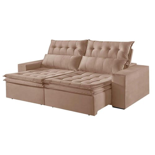 Características: Requer Montagem: Sim Acessórios inclusos: Não Acompanha Chaise: Não Tipo do Acento: Retrátil Pillow Top: Com Pillow Duplo de 2 e 7 cm Densidade Espuma Assento: D-28 Possui Mola no Assento: Sim Tipo de mola: Molas Bonnel Possui Persinta: Sim Tipo de Persinta: Percinta Elástica Tipo do Encosto: Reclinável Almofadas do encosto, Fixa ou Solta: Encosto Bipartido, Reclinável, Almofadas Fixas Densidade Espuma Encosto: 100 Fibra de Silicone Possui Pés: Sim Quantidade de Pés: 8 Tipo de Pés: Madeira Acompanha Rodízio: Sim Quantidade de Rodízios: 2 Rodízios Material Rodízio: Silicone Matéria Prima: Eucalipto Tratado Revestimento: Espuma D-28 Soft Madeira Aparelhada ou Bruta: Aparelhada A Madeira é Tratada: Sim Tipo de Trilho Onde Corre o Retrátil: Tubo Pintado É Bipartido ou Inteiriço: Bipartido Estágios da Catraca: Catraca 5 Estágios