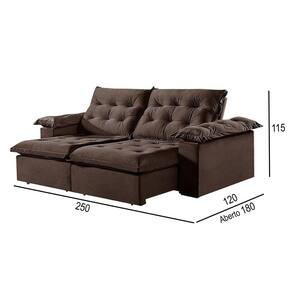 Dimensoes: Altura: 115 cm Largura: 250 cm Profundidade Fechado: 120 cm Profundidade Aberto: 180 cm Peso: 131 kg