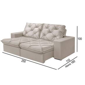 Características: Requer Montagem?: Sim Acessóios inclusos: Não Acompanha Chaise?: Não Tipo do Acento, tem Pillow Top?: Retrátil, Com Pillow Top De 20 Cm Densidade Espuma Assento: D-28 Possui Mola no Assento? Tipo de mola?: Sim, Molas Ensacadas Possui Persinta? Tipo de Persinta: Sim, Percinta Elastica Tipo do Encosto: Reclinável Amofadas do encosto Fixa ou Solta?: Encosto Reclinável, Almofadas Fixa Densidade Espuma Encosto: 100 Fibra Silicone Posui Pés -Sim ou Não-: Sim Quantidade de Pés: 8 Tipo de Pés -Material-: Madeira Acompanha Rodízio -Sim ou Não-: Sim Quantidade de Rodízios: 2 Rodízios Material Rodízio: Silicone Matéria Prima: Elcalipto Tratado Revestimento: Espuma D-28 Soft Madeira Aparelhada ou Bruta?: Aparelhada A Madeira é Tratada? -Sim ou Não-: Sim Tipo de Trilho Onde Corre o Retrátil?: Tubo Pintado É Bipartido ou Inteiriço?: Bipartido Estagios da Catraca: Catacra 5 Estágios