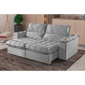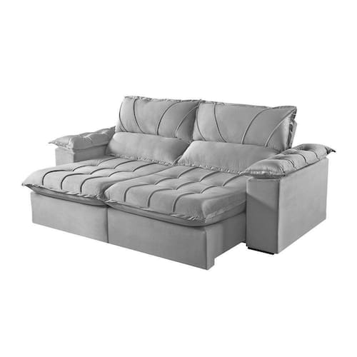 Sofá 4 Lugares Retrátil E Reclinável Martins M-178 Veludo Cinza Sofa 4 Lugares Retratil e Reclinavel Martins M-178 Veludo Caracteristicas: Requer Montagem?: Sim Acessoios inclusos: Nao Acompanha Chaise?: Nao Tipo do Acento, tem Pillow Top?: Retratil, Com Pillow Top De 20 Cm Densidade Espuma Assento: D-28 Possui Mola no Assento? Tipo de mola?: Sim, Molas Ensacadas Possui Persinta? Tipo de Persinta: Sim, Percinta Elastica Tipo do Encosto: Reclinavel Amofadas do encosto Fixa ou Solta?: Encosto Bipartido ,Reclinavel, Almofadas Fixa Densidade Espuma Encosto: 100 Fibra Silicone Tem pillow nos Bracos?: Pillow Top 100 Fibra Silicone Posui Pes (Sim ou Nao): Sim Quantidade de Pes: 8 Tipo de Pes (Material): Madeira Acompanha Rodizio (Sim ou Nao): Sim Quantidade de Rodizios: 2 Rodizios Material Rodizio: Silicone Materia Prima: Elcalipto Tratado Revestimento: Espuma D-28 Soft Madeira Aparelhada ou Bruta?: Aparelhada A Madeira e Tratada? (Sim ou Nao): Sim Tipo de Trilho Onde Corre o Retratil?: Tubo Pintado E Bipartido ou Inteirico?: Bipartido Estagios da Catraca: Catacra 5 Estagios