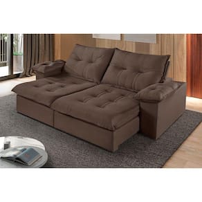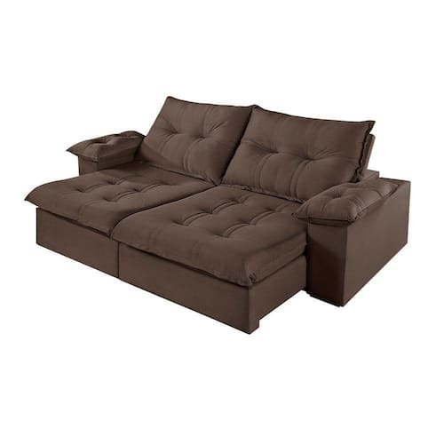 Sofá 4 Lugares Retrátil E Reclinável Martins M-183 Veludo Marrom Sofa 4 Lugares Retratil e Reclinavel Martins M-183 Veludo Caracteristicas: Requer Montagem?: Sim Acessoios inclusos: Nao Acompanha Chaise?: Nao Tipo do Acento, tem Pillow Top?: Retratil, Com Pillow Top De 20 cm Densidade Espuma Assento: D-28 Possui Mola no Assento? Tipo de mola?: Sim, Molas Ensacadas Possui Persinta? Tipo de Persinta: Sim, Percinta Elastica Tipo do Encosto: Reclinavel / Encosto Fibra Silicone Amofadas do encosto Fixa ou Solta?: Encosto Reclinavel, Almofadas Fixa Densidade Espuma Encosto: 100 Fibra Silicone Densidade espuma do Braco: D-28 Tem pillow nos Bracos?: Pillow Top 100 Fibra Silicone Posui Pes (Sim ou Nao): Sim Quantidade de Pes: 8 Tipo de Pes (Material): Madeira Acompanha Rodizio (Sim ou Nao): Sim Quantidade de Rodizios: 2 Rodizios Material Rodizio: Silicone Materia Prima: Elcalipto Tratado Revestimento: Espuma D-28 Soft Madeira Aparelhada ou Bruta?: Aparelhada A Madeira e Tratada? (Sim ou Nao): Sim Tipo de Trilho Onde Corre o Retratil?: Tubo Pintado E Bipartido ou Inteirico?: Bipartido Estagios da Catraca: Catacra 5 Estagios