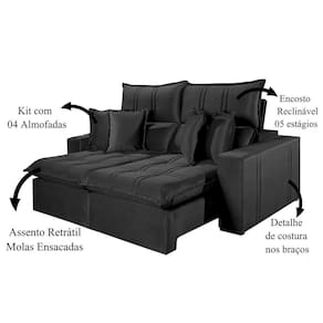 Sofá 4 Lugares Retrátil e Reclinável México Veludo com Molas Ensacadas Preto