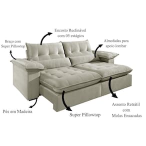 Relaxar ficou muito mais fácil com os assentos retráteis e o encosto reclinável, isso sem falar nesse pillowtop super macio com molas bonnel e molas ensacadas, garantindo aquele duplo molejo espetacular .