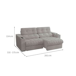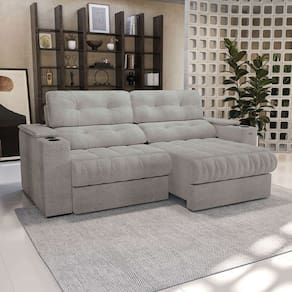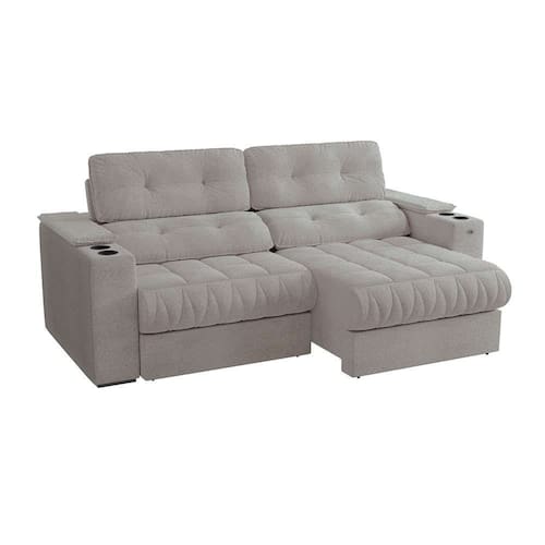 sofá 4 lugares retrátil e reclinável premier molas bouclé cinza 261 cm