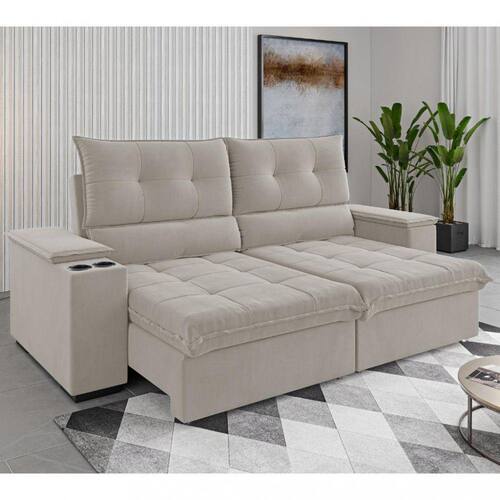 Sofá 4 Lugares Retrátil Reclinável 230cm Veludo Florence Viero Móveis - Off White