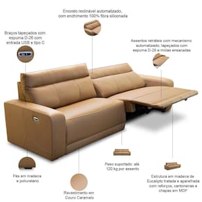 Sofá 4 Lugares Retrátil Reclinável Elétrico 284cm Mazi L06 Couro Caramelo - Lyam Decor