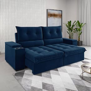 O(a) Sofá 4 Lugares Santiago Retrátil e Reclinável Azul - Viero Móveis é produzido em Eucalipto na escala de brilho Semi-Brilho, e possui um grau de dificuldade de montagem: Médio.