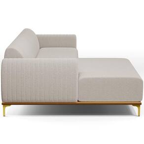 O Sofá com Chaise Esquerdo Para Sala de Estar Molino 300cm D02 da Lyam Decor, exala formosura e elegância! Excelente opção para dispor em sua sala de estar ou espera, recepção, hall de entrada, dormitório, qualquer área de circulação ou antessala entre um cômodo e outro, as possibilidades de combinação são infinitas. Seu protagonismo é notório, sem sombra de dúvidas é perfeita para qualquer ambientação que desejar colocá-la. Com sua resistente estrutura, na cor castanho com detalhes em dourado, deixarão sua decoração ainda mais sofisticada. Oferecendo máximo conforto sem deixar de transmitir todo a magnitude que seu lar merece!