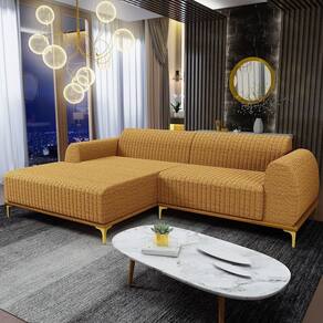 O Sofá com Chaise Esquerdo Para Sala de Estar Molino 300cm D02 da Lyam Decor, exala formosura e elegância! Excelente opção para dispor em sua sala de estar ou espera, recepção, hall de entrada, dormitório, qualquer área de circulação ou antessala entre um cômodo e outro, as possibilidades de combinação são infinitas. Seu protagonismo é notório, sem sombra de dúvidas é perfeita para qualquer ambientação que desejar colocá-la. Com sua resistente estrutura, na cor castanho com detalhes em dourado, deixarão sua decoração ainda mais sofisticada. Oferecendo máximo conforto sem deixar de transmitir todo a magnitude que seu lar merece!