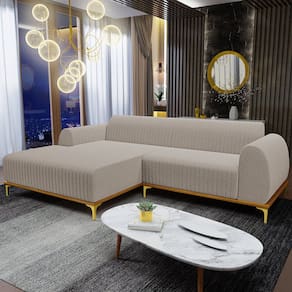 O Sofá com Chaise Esquerdo Para Sala de Estar Molino 320cm D02 da Lyam Decor, exala formosura e elegância! Excelente opção para dispor em sua sala de estar ou espera, recepção, hall de entrada, dormitório, qualquer área de circulação ou antessala entre um cômodo e outro, as possibilidades de combinação são infinitas. Seu protagonismo é notório, sem sombra de dúvidas é perfeita para qualquer ambientação que desejar colocá-la. Com sua resistente estrutura, na cor castanho com detalhes em dourado, deixarão sua decoração ainda mais sofisticada. Oferecendo máximo conforto sem deixar de transmitir todo a magnitude que seu lar merece!