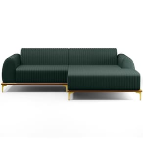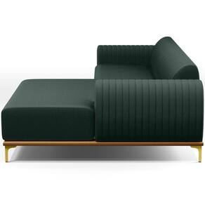 Sofá 5 Lugares Com Chaise Direito Sala Estar Molino 300cm D02 Linho Verde Musgo C-117 - Lyam Decor O Sofá 5 Lugares com Chaise Direito Para Sala de Estar Molino 300cm D02 Linho Verde Musgo C-117 - Lyam Decor exala formosura e elegância! Excelente opção para dispor em sua sala de estar ou espera, recepção, hall de entrada, dormitório, qualquer área de circulação ou antessala entre um cômodo e outro, as possibilidades de combinação são infinitas. Seu protagonismo é notório, sem sombra de dúvidas é perfeita para qualquer ambientação que desejar colocá-la. Com sua resistente estrutura, na cor castanho com detalhes em dourado, o encosto e assento revestidos em Linho, deixarão sua decoração ainda mais sofisticada. Oferecendo máximo conforto sem deixar de transmitir todo a magnitude que seu lar merece! Dimensões do produto (L x A x P) 300 x 76 x 150 cm Altura do assento: 44 cm Largura do assento: 185 cm Profundidade do assento: 54 cm Profundidade externa (lado sem Chaise): 85 cm Altura livre do encosto: 35 cm Profundidade livre de assento (Chaise): 119 cm Largura Chaise: 115 cm Largura do braço: 25 cm Altura interna do braço: 19 cm Altura externa do braço: 60 cm Altura dos pés: 16 cm Características: Estrutura em madeira de eucalipto, partes em MDF ou OSB. Revestimento Veludo. Base em madeira envernizada na cor castanho com pés de alumínio na cor D'Ouro. Assento fixo com espuma D-28 HR sobre chapas de OSB. Encosto fixo com espuma D-23 sobre percintas elásticas. Braço com espuma D-23. Chaise do lado Direito do sofá. Suporta até 120 Kg por assento. - Por se tratar de estofado as medidas podem ter uma pequena variação de até 3 cm. - A tonalidade do produto real poderá ter ligeira variação devido o lote de tecidos. Observações importantes: - Produto para residencial em ambiente interno, não devendo ficar exposto diretamente ao sol, calor e umidade excessivos. - Pode haver alguma diferença de tonalidade entre a imagem e o produto real, por conta do tratamento de imagens e a calibração de cores do seu monitor. - As imagens são meramente ilustrativas, não acompanham objetos de decoração e eletrônicos. - Ao receber a mercadoria, o cliente deve verificar as condições da embalagem, caso haja alguma não assine o comprovante de recebimento. - Montagem, desmontagem e outras instalações serão de responsabilidade do cliente. Não nos responsabilizamos, no ato da , por subir escadas/elevadores ou pelo transporte por guincho em apartamentos. Eventuais despesas são de responsabilidade do comprador. - Confira as dimensões do produto e certifique-se de que passará normalmente por supostos elevadores, portas, escadas e/ou corredores de sua residência. NA