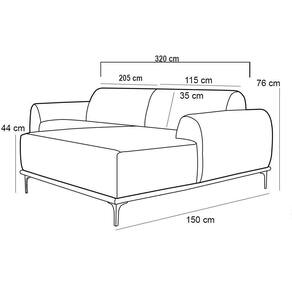 Suporta até 120 Kg por assento. - Por se tratar de estofado as medidas podem ter uma pequena variação de até 3 cm. - A tonalidade do produto real poderá ter ligeira variação devido o lote de tecidos. Observações importantes: - Produto para uso residencial em ambiente interno, não devendo ficar exposto diretamente ao sol, calor e umidade excessivos. - Pode haver alguma diferença de tonalidade entre a imagem e o produto real, por conta do tratamento de imagens e a calibração de cores do seu monitor. - As imagens são meramente ilustrativas, não acompanham objetos de decoração e eletrônicos. - Ao receber a mercadoria, o cliente deve verificar as condições da embalagem, caso haja alguma não assine o de . - Montagem, desmontagem e outras instalações serão de responsabilidade do cliente. Não nos responsabilizamos, no ato da , por subir escadas/elevadores ou pelo por guincho em apartamentos. Eventuais despesas são de responsabilidade do comprador. - Confira as dimensões do produto e certifique-se de que passará normalmente por supostos elevadores, portas, escadas e/ou corredores de sua residência. Altura Montado: 76 | Largura Montado: 320 | Profundidade Montado: 150