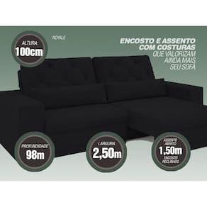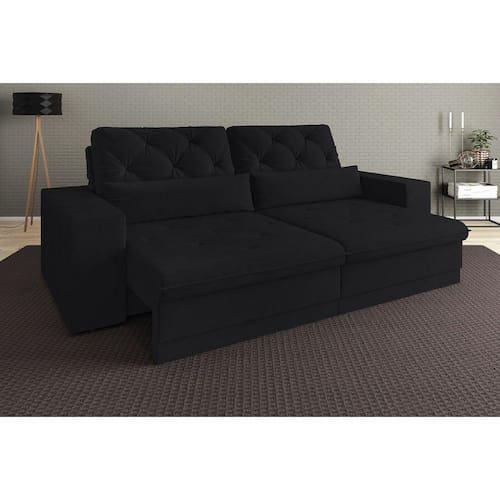 Sofá 5 Lugares Net Royale Assento Retrátil e Reclinável Preto 2,50m (L)