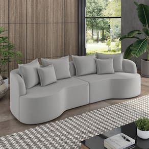O Sofá 5 Lugares Orgânico Living Mersa de 290 cm é a escolha ideal para quem busca conforto, estilo e durabilidade. Com design modular, o sofá Mersa é versátil e pode se adequar a diferentes layouts de sala. Ele possui revestimento em Veludo Cinza, perfeito para trazer um toque de modernidade para sua sala. Conta com uma estrutura feita em madeira de lei (eucalipto), devidamente tratada e aparelhada, oferecendo maior resistência ao móvel. Os reforços com cantoneiras e chapas em MDF garantem uma estrutura sólida e resistente. Tanto o encosto quanto o assento possuem cintas metálicas e molas espirais no assento, oferecendo conforto, suporte e aconchego como poucos sofás no mercado. O estofado assegura um toque macio e aconchegante com espumas D-28 no assento, fibra siliconada 100% no encosto e espumas D-23 nos braços. Tudo pensado para proporcionar uma sensação acolhedora, perfeita para relaxar enquanto você assiste a um filme ou lê um bom livro. Sem contar que os pés de madeira acrescentam-se ao design garantindo maior estabilidade ao móvel. E tem mais, além do encosto e assento serem fixos ideal para quem deseja unir conforto, estilo e praticidade, o sofá ainda acompanha charmosas almofadas decorativas, tornando-o uma peça perfeita. Se você busca um sofá que combine sofisticação extra, durabilidade e estilo, o Living Mersa é a escolha certa. Com ele, você terá uma peça única que valoriza o seu lar e proporciona o descanso merecido após um dia agitado. Não perca a chance de adquirir esse sofá e elevar o nível de conforto e beleza do seu espaço!