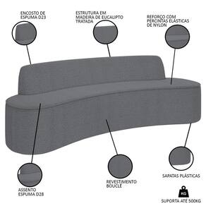 O impressionante Sofá 5 Lugares para Sala de Estar Living 300cm Koane D06 Bouclê Cinza, da Mpozenato, é o estofado perfeito para elevar seu espaço de convivência! Projetado com um toque moderno, esse sofá curvo apresenta estilo e funcionalidade, o que o torna indispensável para qualquer casa contemporânea.