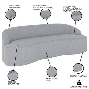 Com design curvo e incrivelmente moderno, o Sofá 5 Lugares para Sala de Estar Living 300cm Theo D06 Linho Cinza Claro, da Mpozenato, é ideal para a sua sala de estar ou living, pois é uma ótima opção para quem busca um estofado confortável, sem abrir mão do estilo e funcionalidade.