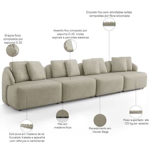 Sofá modulado contendo: 02 assentos com braço e 02 assentos sem braço.