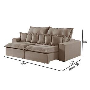 Características: Material: Linho Requer Montagem?: Sim Acessóios inclusos: Almofadas Decorativas Acompanha Chaise?: Não Tipo do Acento, tem Pillow Top?: Retrátil, Com Pillow Top De 20 Cm Densidade Espuma Assento: D-28 Possui Mola no Assento? Tipo de mola?: Sim, Molas Ensacadas Possui Persinta? Tipo de Persinta: Sim, Percinta Elastica Tipo do Encosto: Reclinável Amofadas do encosto Fixa ou Solta?: Encosto Reclinável, Almofadas Fixa Densidade Espuma Encosto: 100 Fibra Silicone Posui Pés -Sim ou Não-: Sim Quantidade de Pés: 8 Tipo de Pés -Material-: Madeira Acompanha Rodízio -Sim ou Não-: Sim Quantidade de Rodízios: 2 Rodízios Material Rodízio: Silicone Matéria Prima: Elcalipto Tratado Revestimento: Espuma D-28 Soft Madeira Aparelhada ou Bruta?: Aparelhada A Madeira é Tratada? -Sim ou Não-: Sim Tipo de Trilho Onde Corre o Retrátil?: Tubo Pintado É Bipartido ou Inteiriço?: Bipartido Estagios da Catraca: Catacra 5 Estágios