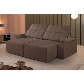 Sofá 5 Lugares Retrátil E Reclinável M-182 Martins Marrom Sofa 5 Lugares Retratil e Reclinavel M-182 Martins Com Acessorios Veludo Caracteristicas: Requer Montagem?: Sim Acessoios inclusos: Porta Copo No Braco Acompanha Chaise?: Nao Tipo do Acento, tem Pillow Top?: Retratil Densidade Espuma Assento: D-28 Possui Mola no Assento? Tipo de mola?: Sim, Molas Ensacadas Possui Persinta? Tipo de Persinta: Sim, Percinta Elastica Tipo do Encosto: Reclinavel Amofadas do encosto Fixa ou Solta?: Encosto Bipartido ,Reclinavel, Almofadas Fixa Densidade Espuma Encosto: 100 Fibra Silicone Tem pillow nos Bracos?: Pillow Top 4 Cm Espuma D-28 Posui Pes (Sim ou Nao): Sim Quantidade de Pes: 8 Tipo de Pes (Material): Madeira Acompanha Rodizio (Sim ou Nao): Sim Quantidade de Rodizios: 2 Rodizios Material Rodizio: Silicone Materia Prima: Elcalipto Tratado Revestimento: Espuma D-28 Soft Madeira Aparelhada ou Bruta?: Aparelhada A Madeira e Tratada? (Sim ou Nao): Sim Tipo de Trilho Onde Corre o Retratil?: Tubo Pintado E Bipartido ou Inteirico?: Bipartido Estagios da Catraca: Catacra 5 Estagios