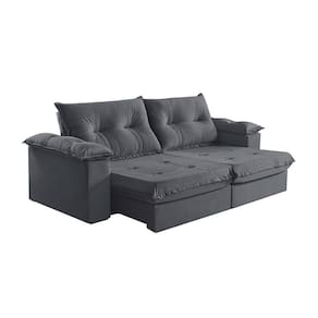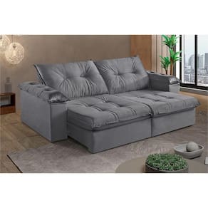 Sofá 5 Lugares Retrátil E Reclinável Martins M-164 Veludo Grafite Sofa 5 Lugares Retratil e Reclinavel Martins M-164 Veludo Caracteristicas: Requer Montagem?: Sim Acessoios inclusos: Nao Acompanha Chaise?: Nao Tipo do Acento, tem Pillow Top?: Retratil, Com Pillow Top De 20 Cm Densidade Espuma Assento: D-28 Possui Mola no Assento? Tipo de mola?: Sim, Molas Ensacadas Possui Persinta? Tipo de Persinta: Sim, Percinta Elastica Tipo do Encosto: Reclinavel Amofadas do encosto Fixa ou Solta?: Encosto Reclinavel, Almofadas Fixa Densidade Espuma Encosto: 100 Fibra Silicone Tem pillow nos Bracos?: Pillow Top 100 Fibra Silicone Posui Pes (Sim ou Nao): Sim Quantidade de Pes: 8 Tipo de Pes (Material): Madeira Acompanha Rodizio (Sim ou Nao): Sim Quantidade de Rodizios: 2 Rodizios Material Rodizio: Silicone Materia Prima: Elcalipto Tratado Revestimento: Espuma D-28 Soft Madeira Aparelhada ou Bruta?: Aparelhada A Madeira e Tratada? (Sim ou Nao): Sim Tipo de Trilho Onde Corre o Retratil?: Tubo Pintado E Bipartido ou Inteirico?: Bipartido Estagios da Catraca: Catacra 5 Estagios