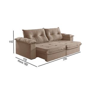 Características: Requer Montagem?: Sim Acessóios inclusos: Não Acompanha Chaise?: Não Tipo do Acento, tem Pillow Top?: Retrátil, Com Pillow Top De 20 Cm Densidade Espuma Assento: D-28 Possui Mola no Assento? Tipo de mola?: Sim, Molas Ensacadas Possui Persinta? Tipo de Persinta: Sim, Percinta Elastica Tipo do Encosto: Reclinável Amofadas do encosto Fixa ou Solta?: Encosto Reclinável, Almofadas Fixa Densidade Espuma Encosto: 100 Fibra Silicone Tem pillow nos Braços?: Pillow Top 100 Fibra Silicone Posui Pés -Sim ou Não-: Sim Quantidade de Pés: 8 Tipo de Pés -Material-: Madeira Acompanha Rodízio -Sim ou Não-: Sim Quantidade de Rodízios: 2 Rodízios Material Rodízio: Silicone Matéria Prima: Elcalipto Tratado Revestimento: Espuma D-28 Soft Madeira Aparelhada ou Bruta?: Aparelhada A Madeira é Tratada? -Sim ou Não-: Sim Tipo de Trilho Onde Corre o Retrátil?: Tubo Pintado É Bipartido ou Inteiriço?: Bipartido Estagios da Catraca: Catacra 5 Estágios