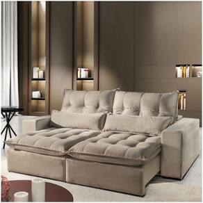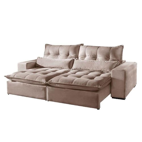 Características: Marca: Mundial Estofados Modelo: Glamour Material da estrutura: Madeira eucalipto reflorestada, seca e imunizada Tecido: Veludo Assento: Retrátil, mola espiral, espuma D26 soft, manta siliconada Encosto: Reclinável em 4 posições, fibra 100 siliconada Braços: Densidade D26 soft Embalagem: Papel ondulado, plástico e malha Acompanha: Almofada rineira, fibra siliconizada Necessita montagem: Sim, fácil montagem, não é necessário montador Capacidade em kg por lugar: Aproximadamente 180 kg Limpeza: Aspirar o produto para eliminar a poeira, utilizar um pano levemente umedecido Recomendações: Usar em local seco, não molhar. Evitar exposição ao sol, para que o produto não sofra alterações na tonalidade