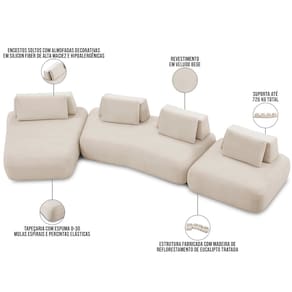 Esse sofá modulado é composto por três módulos espaçosos e confortáveis, capazes de acomodar muitas pessoas, principalmente se for disposto para separar ambientes integrados, pois o encosto móvel permite a versatilidade de assentar em ambos os lados, ou seja, mais fluidez e independência durante os momentos de interação com a família e amigos. Para completar, a tapeçaria de alto padrão eleva o conforto a outro patamar, tornando a experiência ainda mais memorável. Desfrute mais da vida com o Sofá Shape.