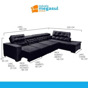 Dados Técnicos do Sofá 7 Lugares de Canto Retrátil e Reclinável Sttilo: