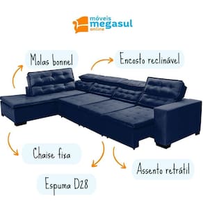 Renove com muita ousadia e elegância o seu ambiente preferido de descanso e descontração, com o Sofá 7 Lugares de Canto Retrátil e Reclinável Sttilo com Chaise 3,60, fabricado pela MegaSul, qual possui encosto reclinável, com catraca silenciosa 5 estágios, almofadas fixas de fibra siliconada, ideal para você aproveitar o seu momento de assistir seus programas de TV preferidos, ou reunir a família junto! Valorize e complete o seu lar com muita beleza e funcionalidade! Aproveite e experimente o novo!