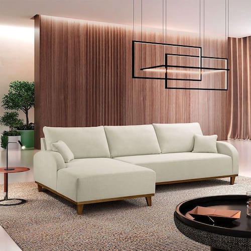 Sofá Albano Linho 300cm Chaise Lado Esquerdo Meu Sofá Online A302 Linho Branco