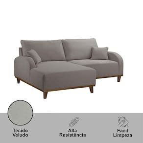 Sofá Albano Veludo 185 Chaise Lado Esquerdo Meu Sofá Online B026 Veludo Prata