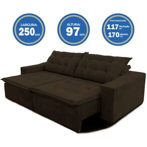Sofá Amazonas 2,50 metros Retrátil com Molas Suede Veludo Light - Sofá na Web - Marrom