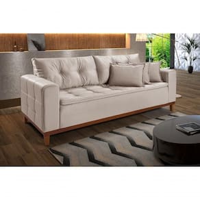 Sofá 3 Lugares Atenas 1,70 Pés e Base em Madeira (Acompanha 3 almofadas) O Sofá Atenas irá transformar sua sala em um ambiente de conforto e bem estar, acomodando até três pessoas sentadas. Desenvolvido com madeira maciça, seu revestimento é de Veludo que tem um toque macio e confortável, almofadas soltas 100% fibras siliconadas, seu assento possui molas, percintas e pillow, espuma D-26 de alta qualidade que fazem deste produto ser ainda mais aconchegante e confortável. Com detalhes que chamam atenção, o sofá Atenas tem costura duplas, no assento, encosto e nos braços que agrega elegância e estilo ao produto. Descrição do Produto: