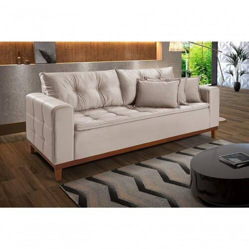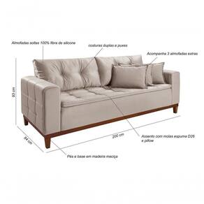 Sofá 3 Lugares Atenas 2,00 Pés e Base em Madeira (Acompanha 3 almofadas) O Sofá Atenas irá transformar sua sala em um ambiente de conforto e bem estar, acomodando até três pessoas sentadas. Desenvolvido com madeira maciça, seu revestimento é de Veludo que tem um toque macio e confortável, almofadas soltas 100% fibras siliconadas, seu assento possui molas, percintas e pillow, espuma D-26 de alta qualidade que fazem deste produto ser ainda mais aconchegante e confortável. Com detalhes que chamam atenção, o sofá Atenas tem costura duplas, no assento, encosto e nos braços que agrega elegância e estilo ao produto. Descrição do Produto: